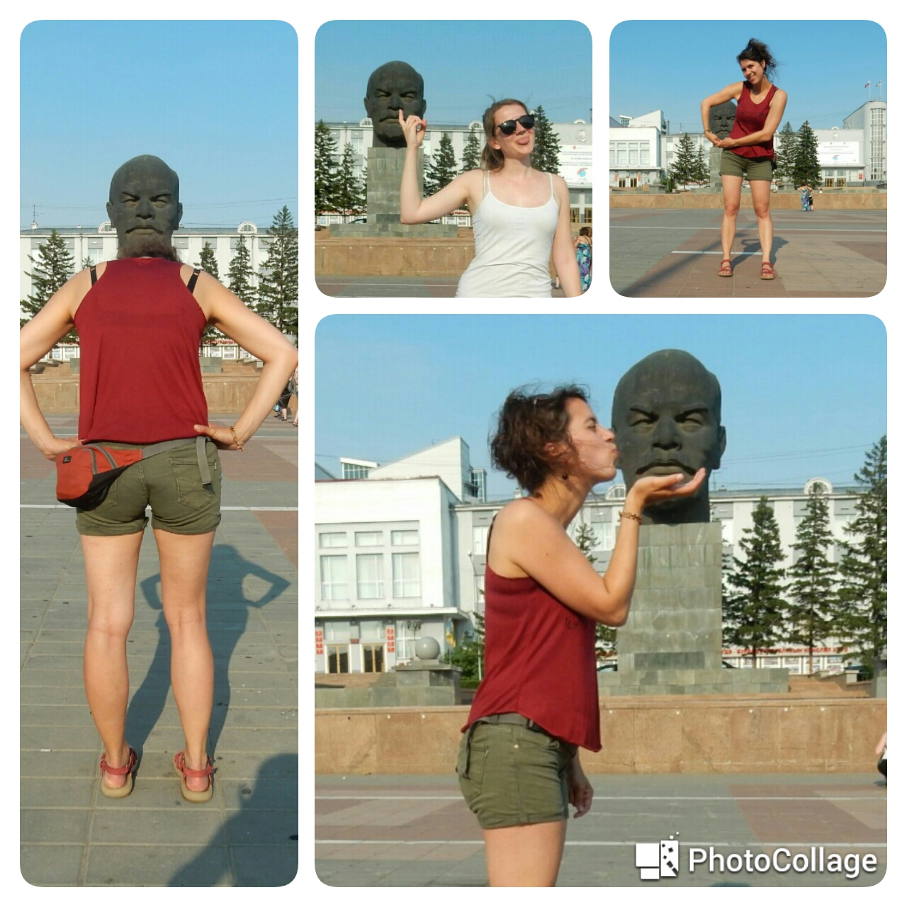 Having a laugh taking goofy pictures with the giant Lenin head