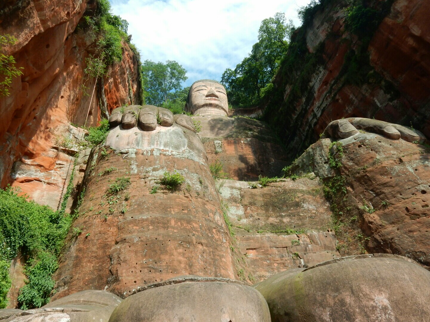 I took the brand new high-speed train from Chengdu to Leshan for a day trip to the Big Buddha. I hopped on a local bus after that and then missed the stop, so I had to walk back. Basic survival as a non-Chinese tourist in China. I thought I was doing well overall; at least I had not ended up in an overpriced taxi. Arriving on the site, you first see the gigantic Buddha head carved out of the mountain rock, which is already quite impressive to start with. Then you can take a cliffside path to descend to the Buddha’s feet. This actually means queueing down along with a Chinese crowd, half of which don’t even consider closing their parasols, because otherwise they might get a tan. However, upon arriving downstairs, the sight of the enormous Buddha is a very impressive one and totally worth the trip.