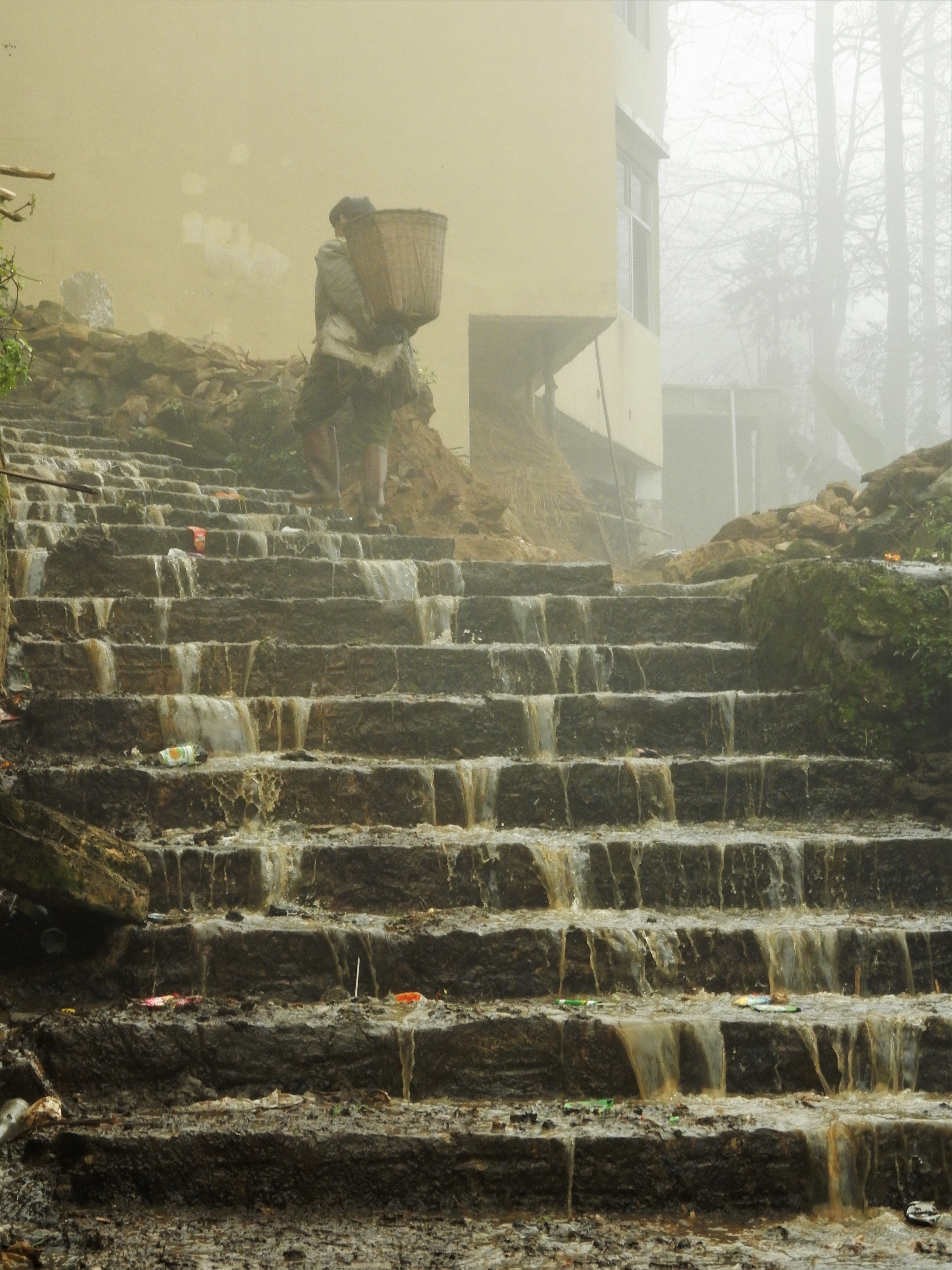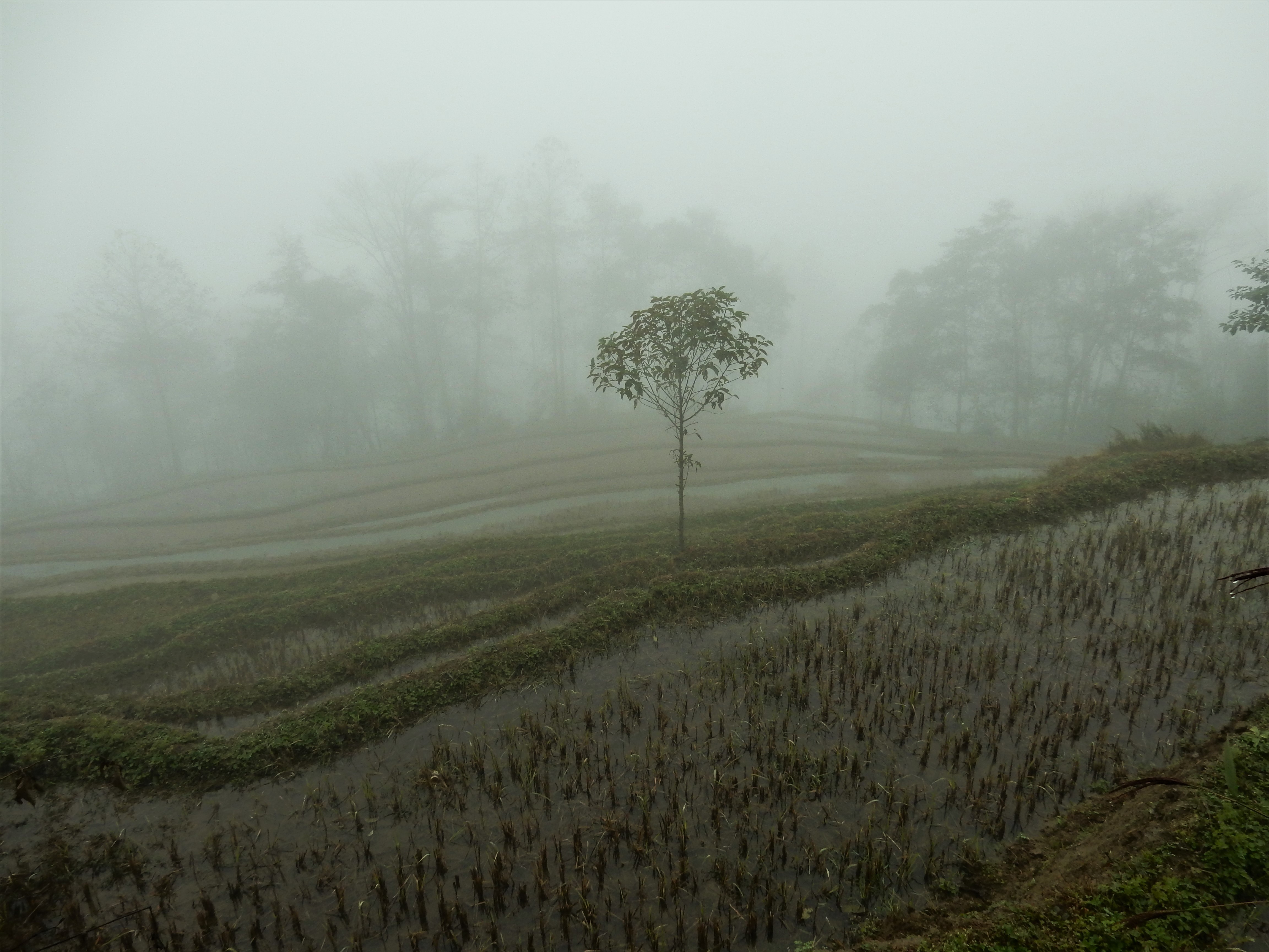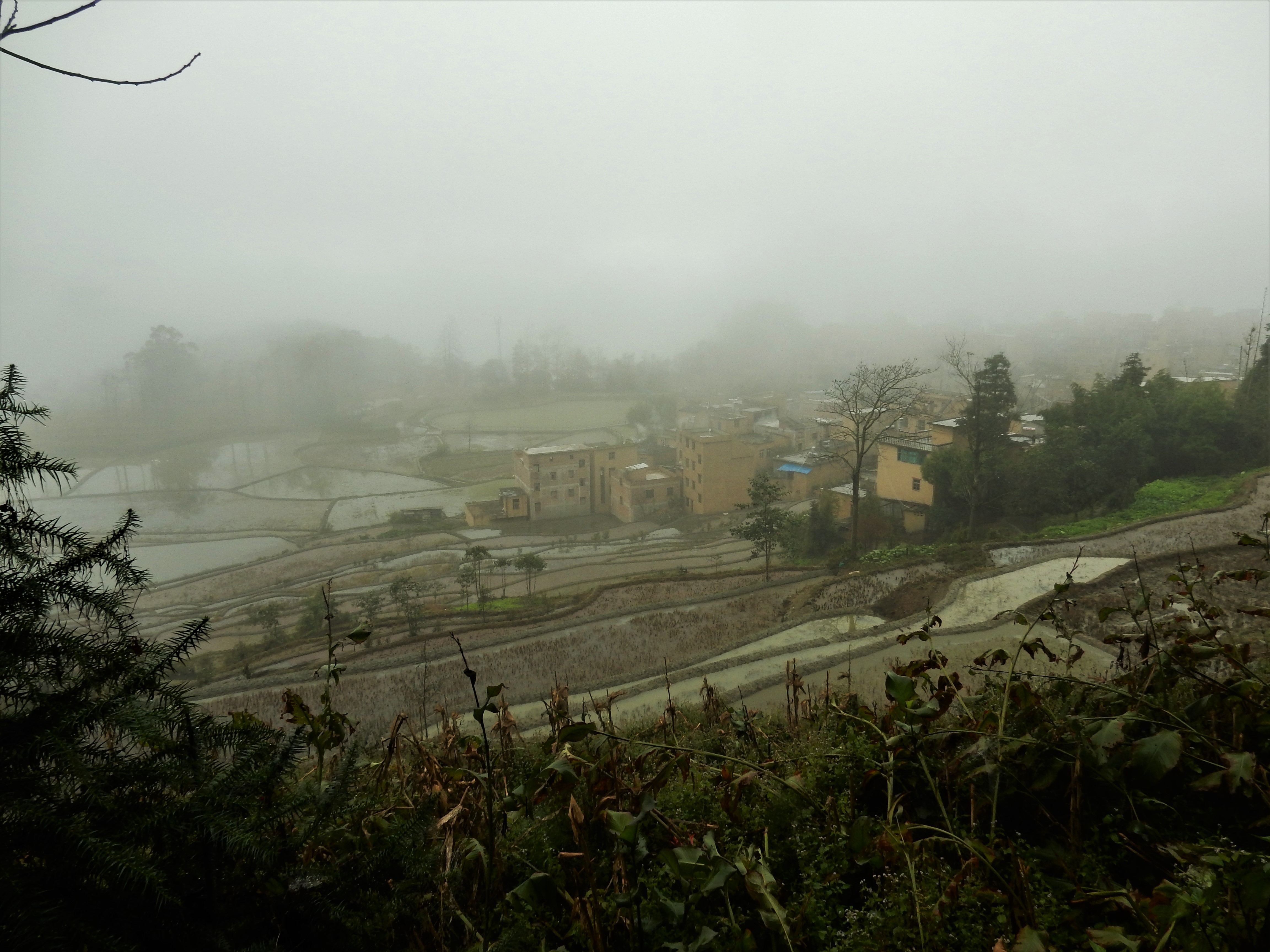 Jacky’s Guesthouse in Yuanyang was right in the middle of a vast landscape of rice terraces and yet it was hard to see all of it. This was due to misty clouds that were literally rolling through the valley, only unveiling parts of the surrounding landscape at once. We set about on our trip and were soon soaked into a mysterious universe.