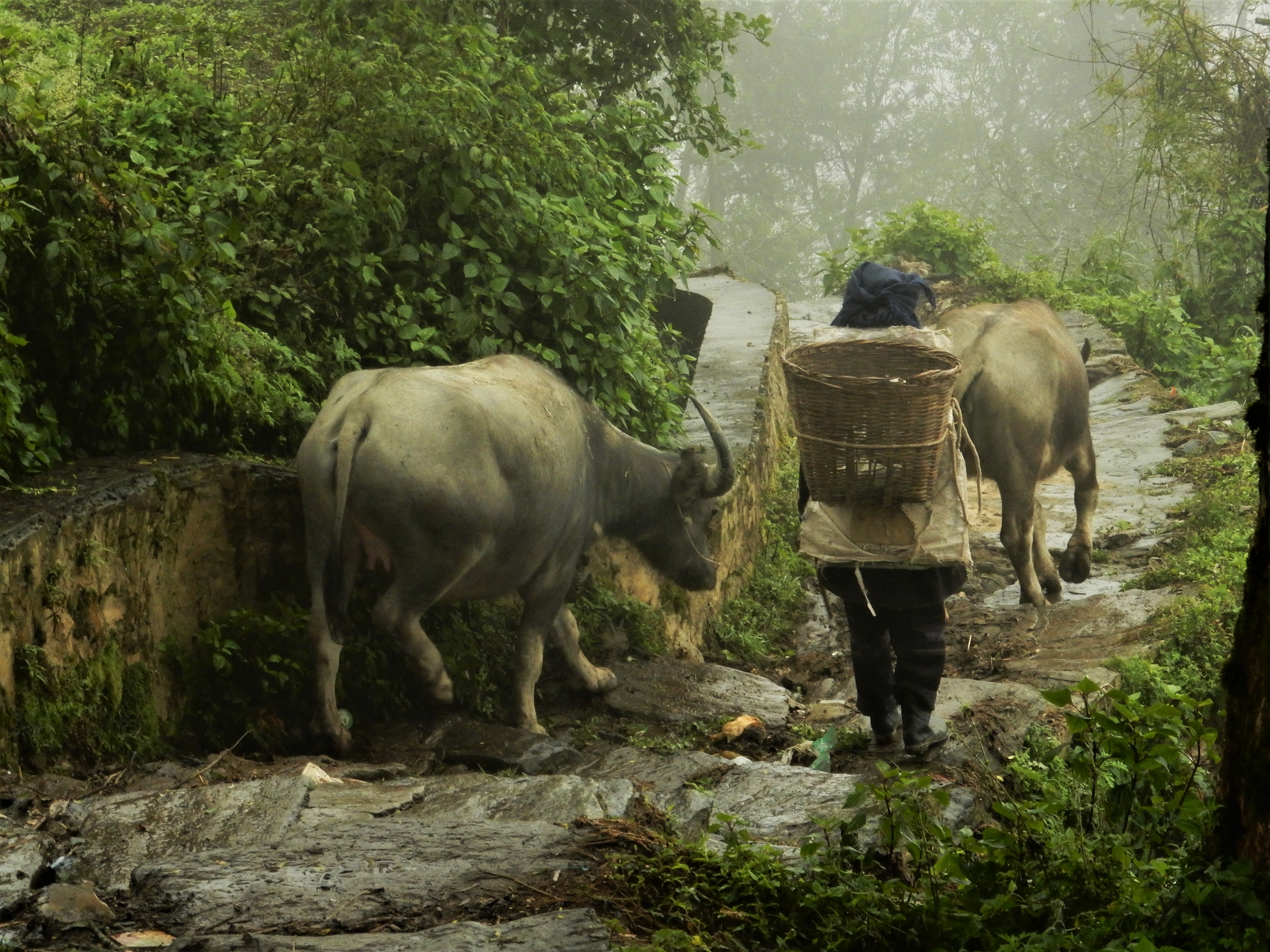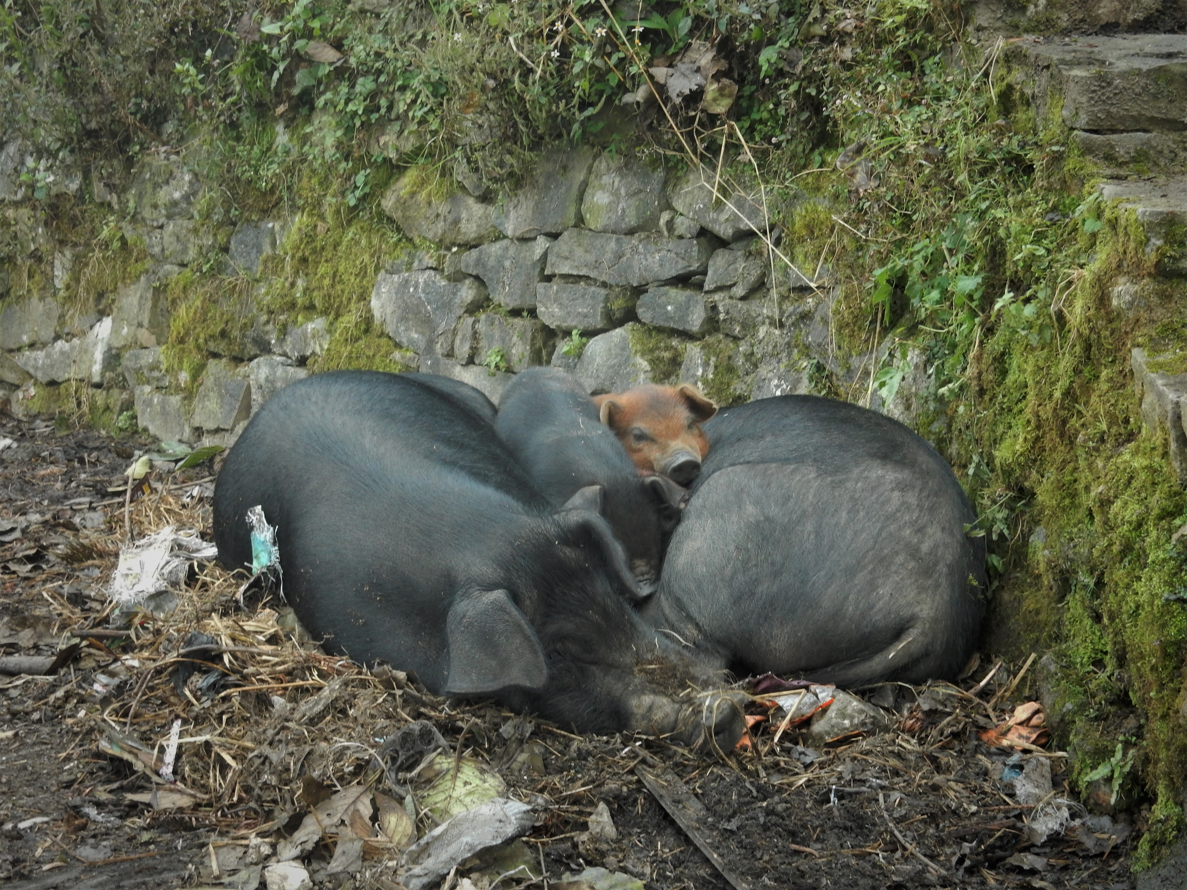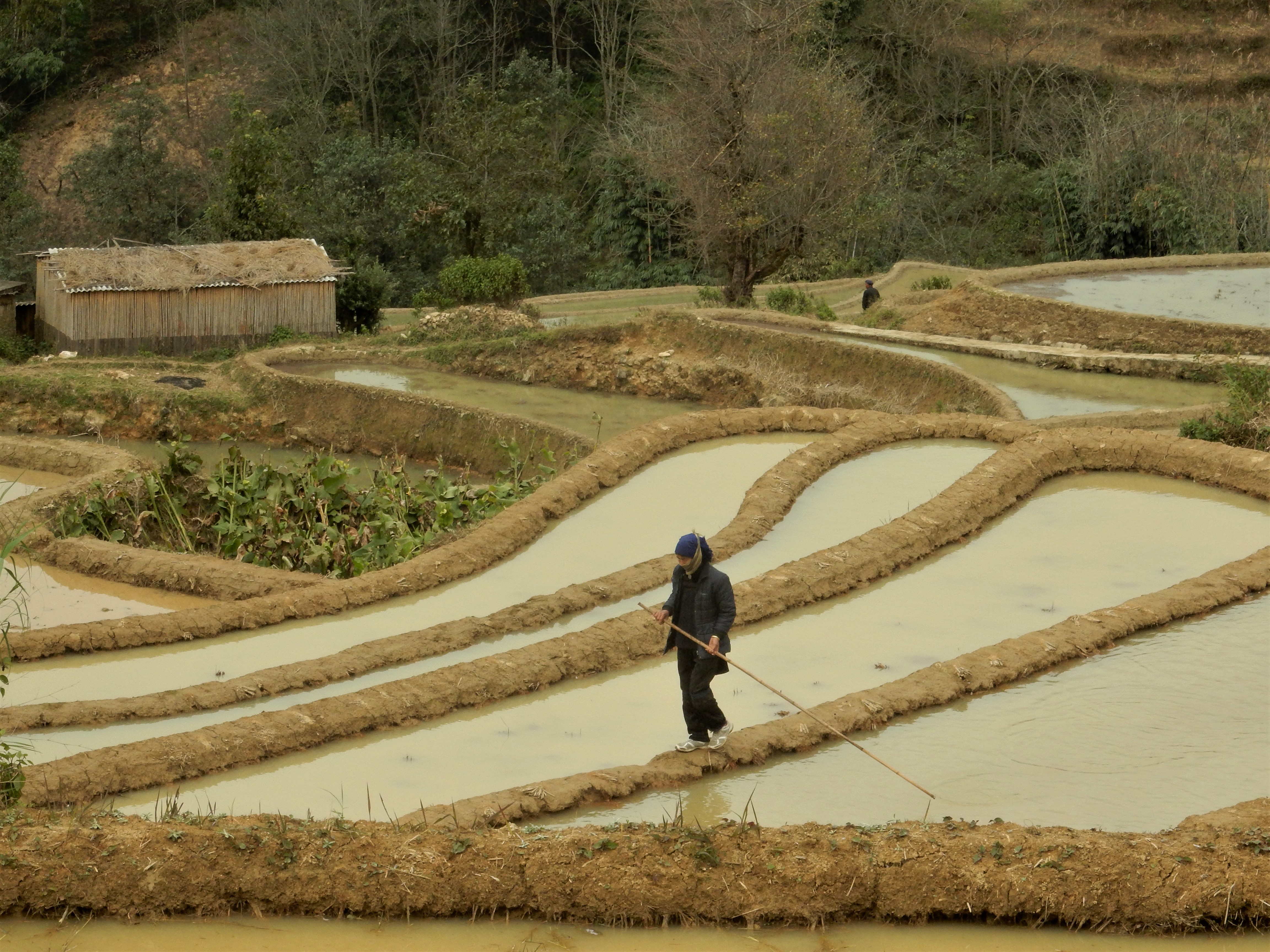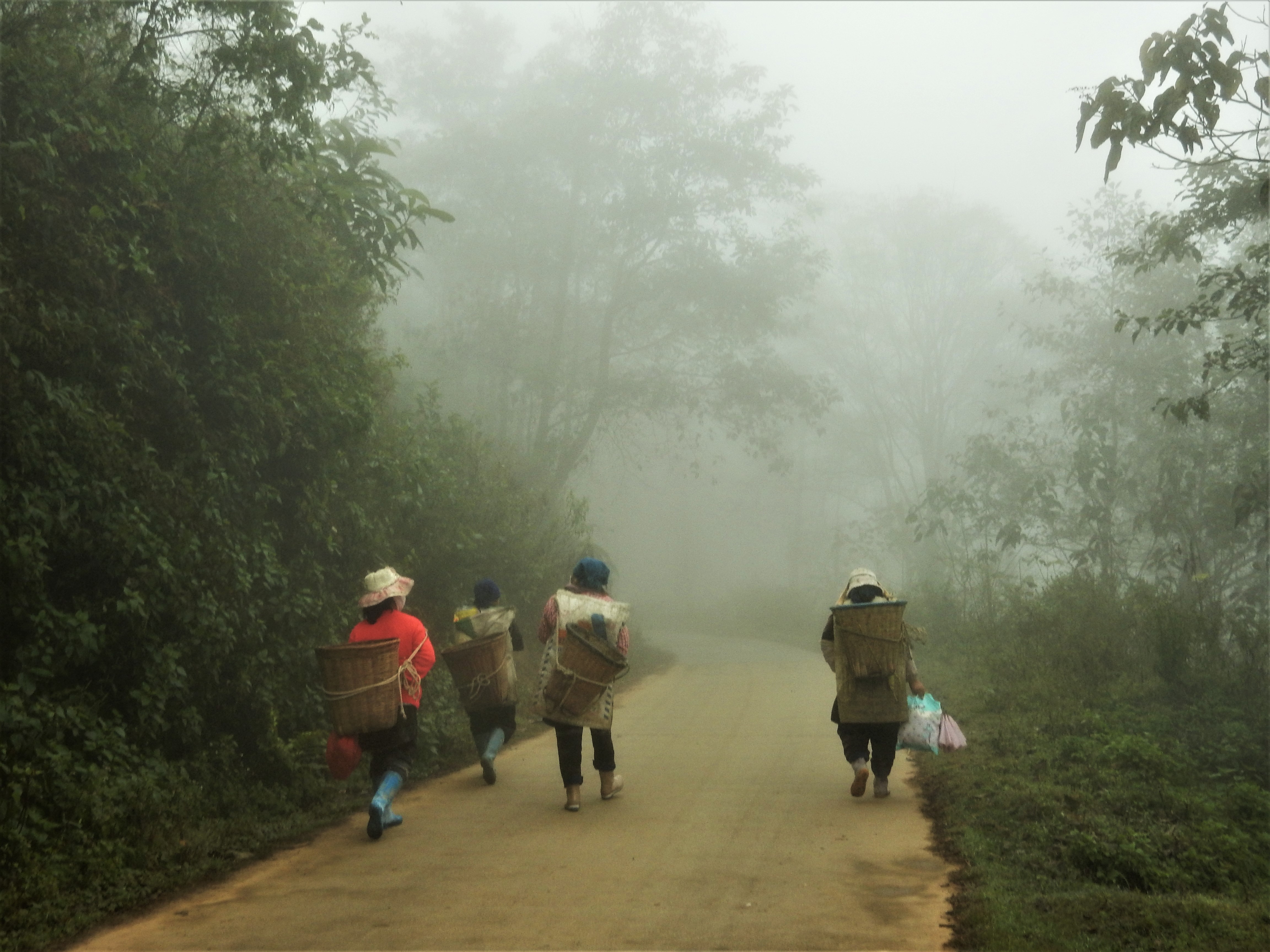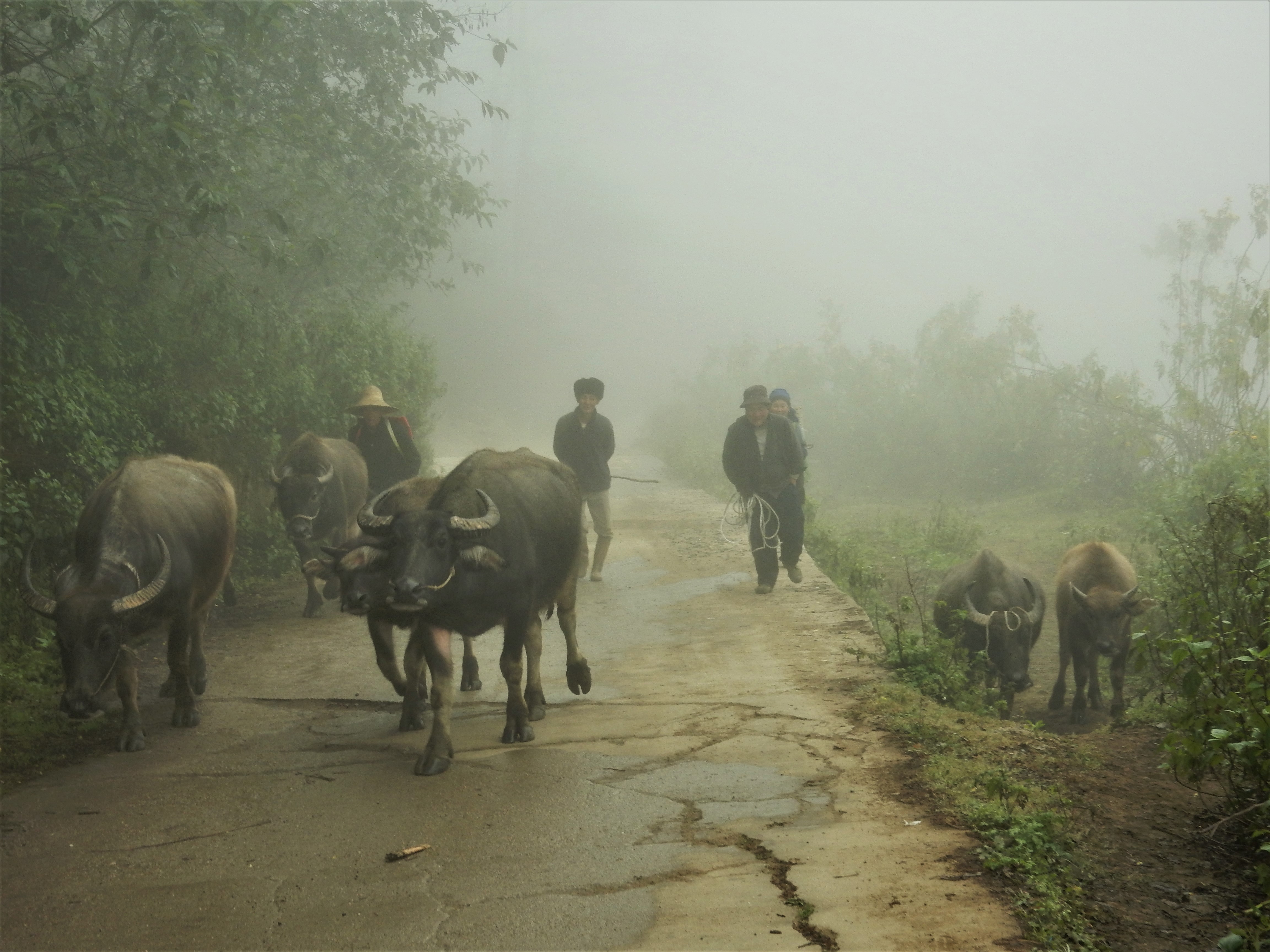 We walked through little villages where people of ethnic minorities were going about their habitual ways and selling some of their products. Some of them were carrying goods along the roads, sometimes helped by oxes or horses, sometimes just by means of huge baskets hanging off their backs. A mother pig wandered around looking for food to feed her piglets. Chickens strolled along and an occasional rooster let out a cry to mark his presence.