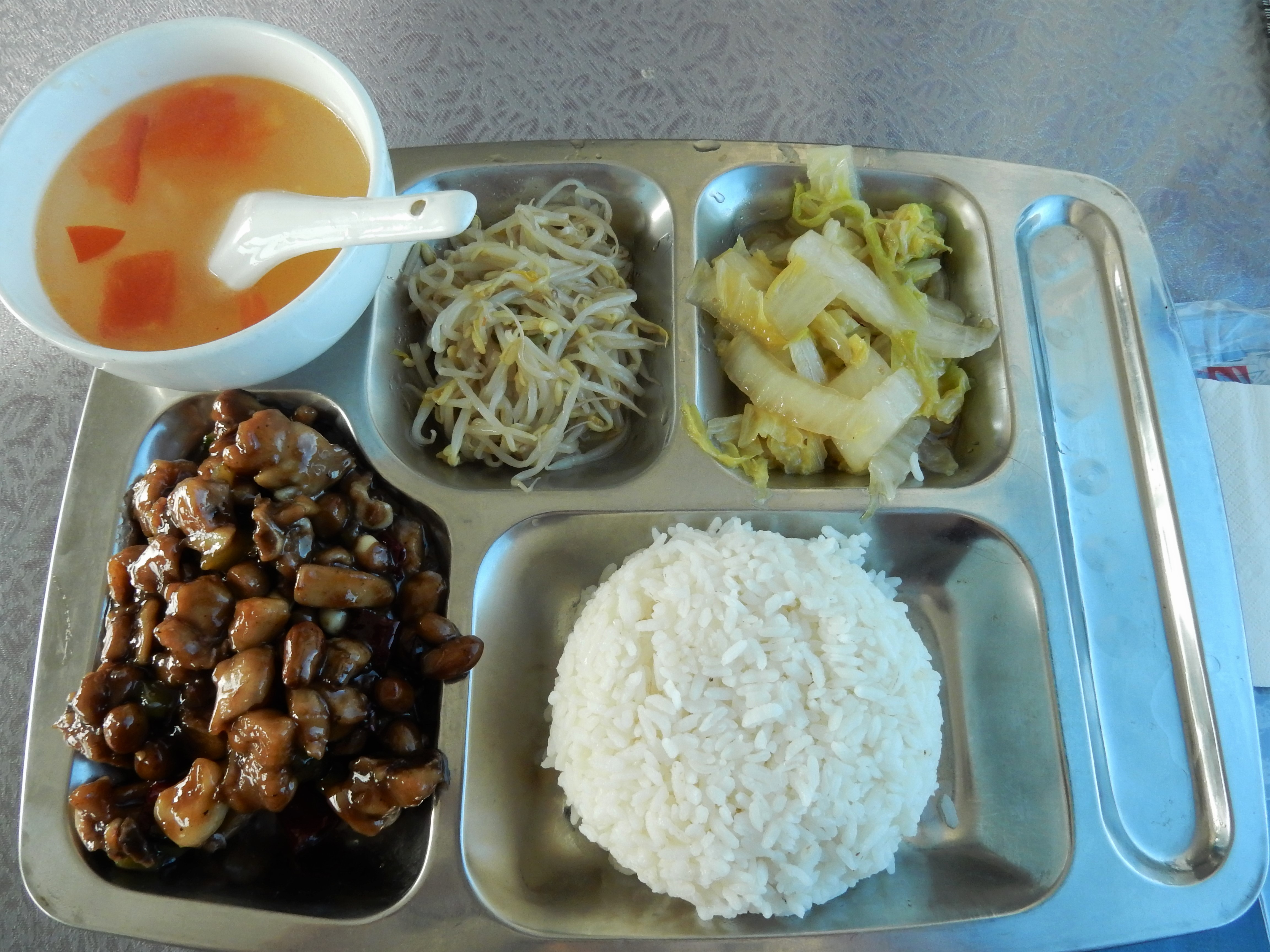 In town, I would walk into a tiny restaurant and see all the heads turn in my direction. People were rather surprised at first, but a little later they would be extremely helpful despite the language barrier. My presence there clearly was some sort of very unusual circumstance. Trying to order food was pretty eventful. A Chinese menu without pictures is always a bit tricky. Chinese food can be absolutely amazing but also a bit scary and very weird at times. My lunch ended up being a thick noodle soup with some very suspicious, unidentifiable ingredients floating around in it. For dinner, I was more successful: a friendly woman served me an enormous amount of meat, vegetables and rice that I was by no means able to finish on my own, but it nevertheless turned out to be a delicious meal.