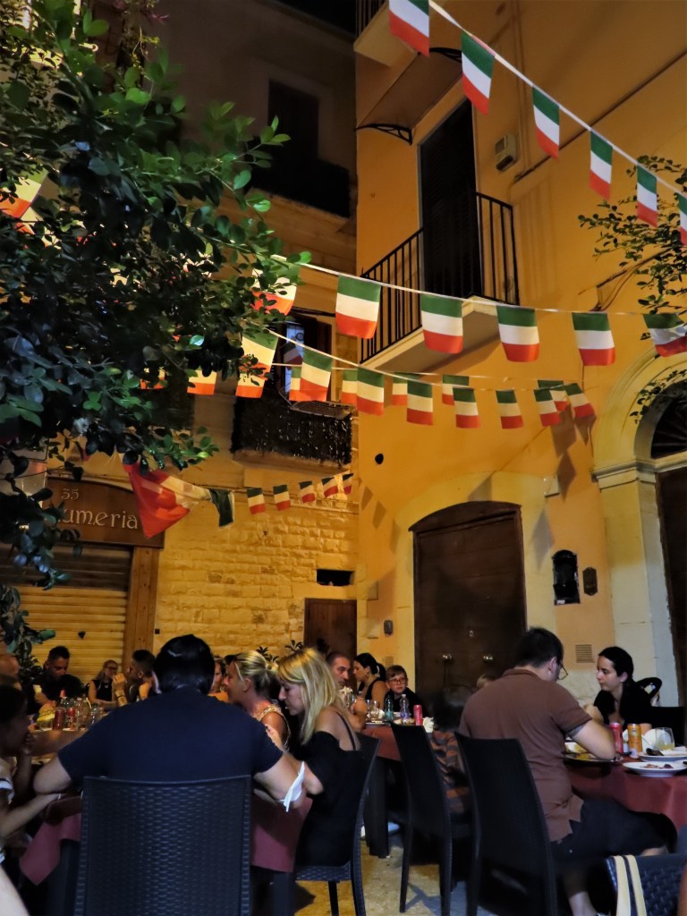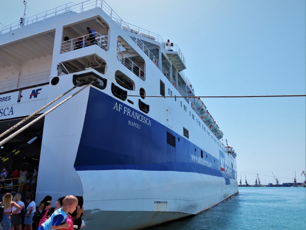 We were back at the port around midnight. We had spent an intense couple of hours in Bari, with its distinctly southern vibe in the sweltering streets. I had eaten a pizza with cheese, sundried tomatoes and hazelnut spread (you read it correctly, this was actually on the menu and I was curious) on a terrace that took up an entire street, while the buoyant restaurant owner was shouting orders at his waiters running across the place. The difference with Florence in the north was remarkable.